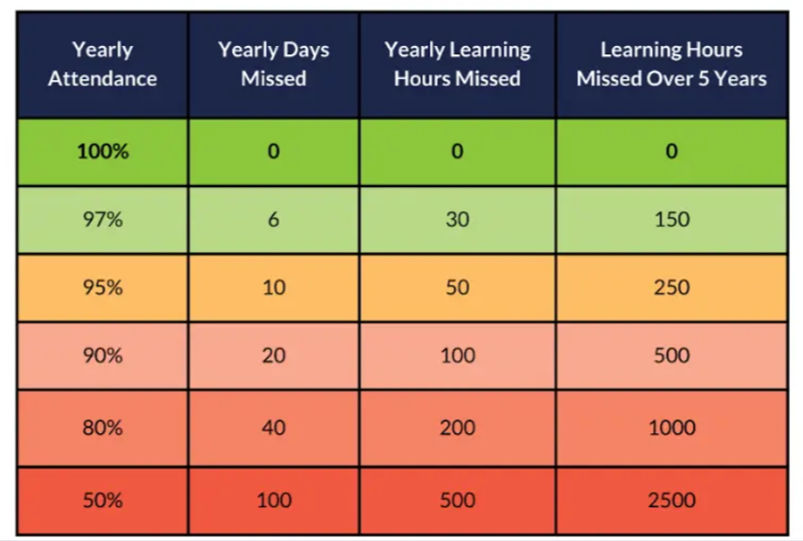 We email parents every week of their child's attendance so you can see what impact absences have through the year.